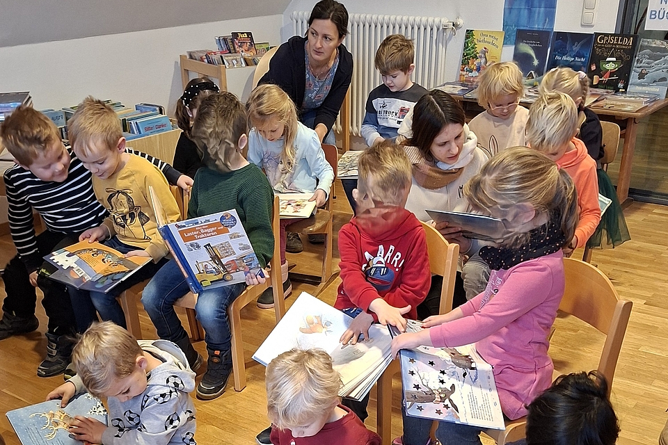 Am 21. November, dem bundesweiten Vorlesetag, durften die SVE-Kinder die Bücherei in Balzhausen besuchen. Fr. Scherer begrüßte die Kinder ganz herzlich und erklärte dann genau, wo welche Bücher zu finden sind. Bei der großen Auswahl an Bilder- und Kinderbüchern fiel die Entscheidung sehr schwer, welche Bücher für die einzelnen Gruppen ausgeliehen werden sollen! Die ausgeliehenen Bücher wurden dann im Anschluss in der SVE vorgelesen. Wir danken ganz herzlich Fr. Scherer, Fr. Keisinger und Fr. Mayr für Ihre Zeit und die tolle Organisation und folgen gerne der netten Einladung einmal wieder zu kommen!