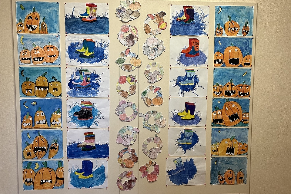 Gemeinsam mit den Schülern der Grundschule Krumbach gestalten die Kinder der 1c viele bunte Herbstbilder und bringen Farbe in die graue Jahreszeit.
